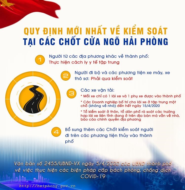 Một số quy định về kiểm soát tại các chốt cửa ngõ thành phố và thực hiện cách ly y tế người dân cần biết, theo Văn bản số 2455/UBND-VX ngày 5/4/2020 về việc thực hiện các biện pháp cấp bách phòng, chống dịch COVID-19 và Văn bản số 2496/UBND-VX ngày 6/4/2020 của UBND thành phố Điều chỉnh một số nội dung đã chỉ đạo thực hiện các biện pháp cấp bách phòng, chống dịch Covid-19: