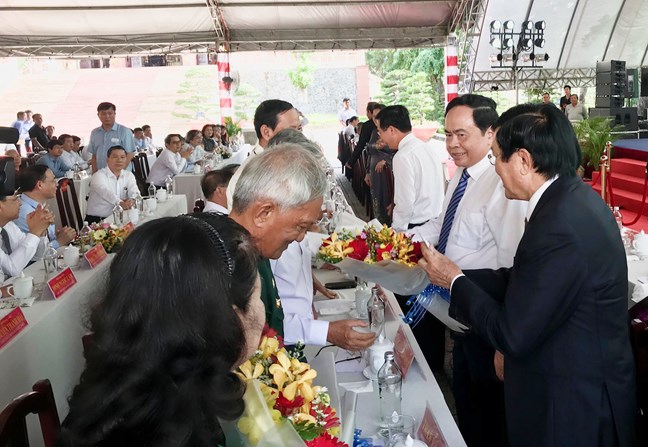 Tham dự lễ kỷ niệm có nguyên Chủ tịch nước Trương Tấn Sang, Chủ tịch Quốc hội Nguyễn Thị Kim Ngân, Phó Thủ tướng Thường trực Chính phủ Trương Hòa Bình, Trưởng Ban Tuyên giáo Trung ương Võ Văn Thưởng, Chủ tịch Ủy ban Trung ương MTTQ Việt Nam Trần Thanh Mẫn.