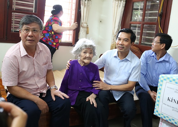 Tại Công ty cổ phần thương mại Hải Đà, (đơn vị sản xuất kinh doanh vận tải đường bộ, đường thủy, san lấp mặt bằng, kinh doanh các loại vật tư, thiết bị, phụ tùng, sắt thép, thứ liệu, vật liệu xây dựng, chất đốt, xăng  dầu, thực phẩm, nông lâm thủy sản) và gia đình Mẹ Việt Nam anh hùng Nguyễn Thị Chăn – 105 tuổi ở Tổ dân phố số 7, phường Nam Hải, quận Hải An, Chủ tịch Cao Xuân Liên ân cần hỏi thăm sức khỏe, cuộc sống sinh hoạt hàng ngày và chia sẻ nỗi đau chiến tranh còn day dứt trong mỗi gia đình chính sách.