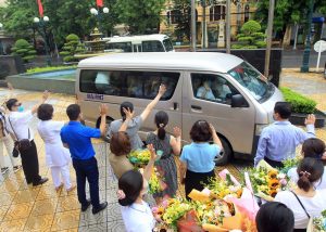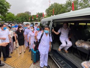 Đến sáng nay, cả 3 Bệnh viện Hữu nghị Việt Tiệp, Bệnh viện Kiến An và Bệnh viện Phụ Sản đã tổ chức Lễ gặp mặt cán bộ đi chi viện cho Đà Nẵng. Các bác sĩ, điều dưỡng đã kịp thời bố trí bàn giao công việc, sắp xếp việc gia đình, chuẩn bị tư trang hành lý lên đường. Đến giờ phút này đã có mặt đầy đủ 33 đồng chí. Về phía lãnh đạo, Sở đã phân công đồng chí Trần Anh Cường – Phó Giám đốc Sở Y tế, với tinh thần xung phong đi cùng đoàn vào trong đó. Chiều nay, 15h30 Đoàn sẽ lên máy bay từ sân bay Nội Bài bay vào tỉnh Thừa Thiên Huế, tiếp đó sẽ có xe đón Đoàn di chuyển vào Đà Nẵng. Lãnh đạo Sở Y tế cho biết sẽ phối hợp với Sở Y tế Đà Nẵng để theo sát, chỉ đạo Đoàn cán bộ của thành phố hoàn thành xuất sắc nhiệm vụ trở về.