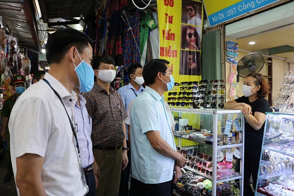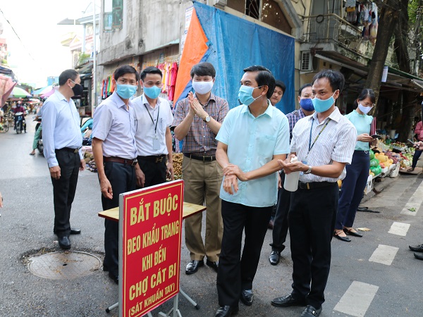 Trưởng ban Dân vận Thành ủy – Chủ tịch Ủy ban MTTQVN Thành phố kiểm tra trực tiếp công tác phòng chống dịch tại chợ Cát Bi, quận Hải An