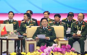 Đại tướng Ngô Xuân Lịch, Uỷ viên Bộ Chính trị, Phó Bí thư Quân uỷ Trung ương, Bộ trưởng Bộ Quốc phòng Việt Nam phát biểu khai mạc Hội nghị hẹp Bộ trưởng Quốc phòng các nước ASEAN . (Ảnh: Dương Giang/TTXVN)