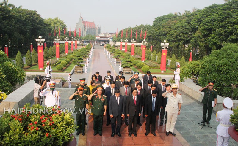 Tại Đài tưởng niệm các Anh hùng liệt sỹ thành phố, trong không khí trang nghiêm thành kính, các đại biểu đã dành phút mặc niệm tưởng nhớ anh linh các Anh hùng liệt sỹ – những người con ưu tú của dân tộc đã không tiếc xương máu vì độc lập, tự do của Tổ quốc và hạnh phúc của Nhân dân. Trước anh linh các Anh hùng liệt sỹ, các đại biểu thành phố nguyện tiếp bước thế hệ cha anh đi trước, nỗ lực vượt qua mọi khó khăn, phấn đấu hoàn thành tốt các nhiệm vụ chính trị được giao, góp sức xây dựng thành phố Hải Phòng ngày càng vững mạnh, văn minh, giàu đẹp.