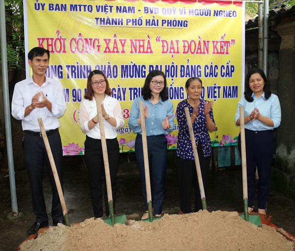 Thiết thực tổ chức các hoạt động chào mừng Đại hội Đảng bộ thành phố lần thứ XVI, hướng tới Đại hội XIII của Đảng và kỷ niệm 90 năm ngày truyền thống Mặt trận Tổ quốc Việt Nam (18/11/1930-18/11/2020). Sáng ngày 22/9/2020 Uỷ ban MTTQVN huyện Cát Hải tổ chức khởi công xây nhà “Đại đoàn kết” và trao kinh phí phát triển sản xuất cho người nghèo. Dự chương trình có bà Vũ Anh Thư – Phó Chủ tịch Ủy ban MTTQVN thành phố; đại biểu lãnh đạo Ban Tuyên giáo, Ban Phong trào Ủy ban MTTQVN thành phố; bà Trần Thị Mai Lê – Phó Chủ tịch Ủy ban MTTQVN huyện; đại diện cấp ủy, chính quyền, các ban, ngành đoàn thể thị trấn Cát Hải, tổ dân phố Tiến Lộc và Lục Độ, cùng bà con làng xóm đến động viên gia đình.