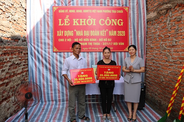 Qua rà soát, 2 hộ gia đình ông Hồ Hữu Bình (trú tại bờ đê Lò Vôi B2- tổ dân phố 5B2 phường Trại Chuối) và bà Phạm Thị Thoa (trú tại số 3/17/21 Đội Văn – tổ dân phố 2C phường Trại Chuối) đều có hoàn cảnh khó khăn, căn nhà cấp 4 đang cư trú đã xuống cấp nghiêm trọng, không đảm bảo an toàn và cuộc sống sinh hoạt thường ngày, nhất là khi trời mưa bão. Trước hoàn cảnh đó, Ủy ban MTTQVN thành phố – Ban Vận động Quỹ “Vì người nghèo” (hỗ trợ mỗi gia đình 35 triệu đồng) cùng với địa phương, các nhà hảo tâm và họ hàng đã động viên, hỗ trợ các gia đình xây mới ngôi nhà.