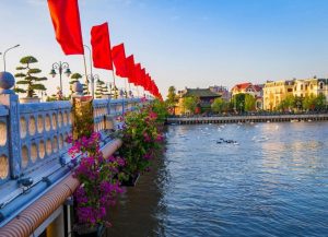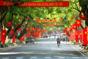 Tuyến đường Hồ Sen – Cầu Rào 2 vừa hoàn thành, cùng với sắc cờ đỏ rực rỡ đã mang đến một diện mạo mới cho quận Lê Chân. Ảnh: Hồng Phong