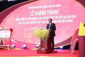Đồng chí Bí thư Thành ủy nhấn mạnh, Lễ Khánh thành Tuyến đường vào và Khu Bảo tồn Bãi cọc Cao Quỳ, xã Liên Khê, huyện Thủy Nguyên hôm nay diễn ra đúng vào ngày khai mạc Đại hội Đại biểu Đảng bộ thành phố lần thứ XVI; với sự tham dự động viên trực tiếp của đồng chí Thủ tướng Chính phủ Nguyễn Xuân Phúc, càng làm cho Dự án có nhiều ý nghĩa.