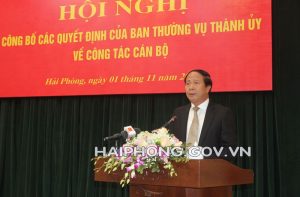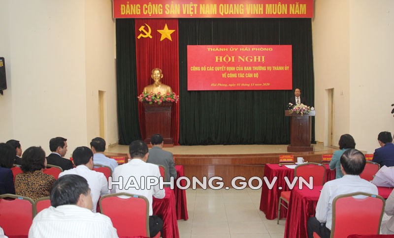 Sáng 1/11, Thường trực Thành ủy tổ chức Hội nghị công bố quyết định của Ban Thường vụ Thành ủy về công tác cán bộ. Đồng chí Lê Văn Thành, Ủy viên Trung ương Đảng, Bí thư Thành ủy, Chủ tịch HĐND thành phố chủ trì Hội nghị. Dự Hội nghị có đồng chí Nguyễn Văn Tùng, Phó Bí thư Thành ủy, Chủ tịch UBND thành phố và các đồng chí Ủy viên Ban Thường vụ Thành ủy.