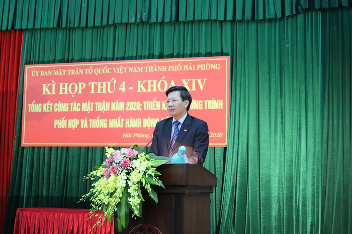 Tại kỳ họp, Phó Chủ tịch Thường trực UBND thành phố Lê Anh Quân đã thông tin tóm tắt về kết quả thực hiện nhiệm vụ phát triển kinh tế- xã hội năm 2020; mục tiêu, chỉ tiêu, nhiệm vụ và giải pháp năm 2021. Cụ thể, năm qua, trên địa bàn thành phố có nhiều công trình, dự án phát triển giao thông đô thị được triển khai xây dựng như: Dự án đầu tư xây dựng nút giao Nam Cầu Bính, khởi động xây dựng Cầu Rào; Công viên Vũ Yên của Tập đoàn Vingroup…, công tác vận động di dời, giải phóng mặt bằng nhận được sự ủng hộ của nhân dân; các chính sách an sinh xã hội như hỗ trợ người dân gặp khó khăn do đại dịch COVID-19 kinh phí 370 tỷ đồng; hỗ trợ học phí cho học sinh các bậc học… được triển khai quyết liệt, khẩn trương, đạt hiệu quả cao. Tình hình an ninh trật tự được bảo đảm, quốc phòng được tăng cường về tiềm lực, khu vực biên giới biển được giữ vững. Thành quả đó có sự đóng góp không nhỏ của Ủy ban Mặt trận các cấp trong công tác tuyên truyền, vận động, tập hợp nhân dân, tăng cường khối đại đoàn kết toàn dân.