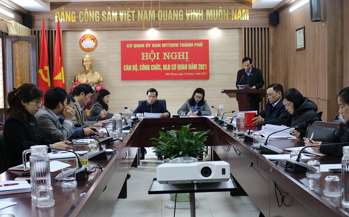 Chiều 19/01, Thủ trưởng – Ban Chấp hành Công đoàn cơ quan Ủy ban MTTQVN thành phố tổ chức Hội nghị cán bộ, công chức, người lao động năm 2021. Đồng chí Cao Xuân Liên, Ủy viên Ban Thường vụ Thành ủy, Chủ tịch Ủy ban MTTQVN thành phố và đồng chí Vũ Anh Thư, Phó Chủ tịch Ủy ban MTTQVN thành phố, Chủ tịch Công đoàn cơ quan chủ trì Hội nghị. Cùng dự có các đồng chí lãnh đạo và cán bộ công chức, người lao động cơ quan Ủy ban MTTQVN thành phố.