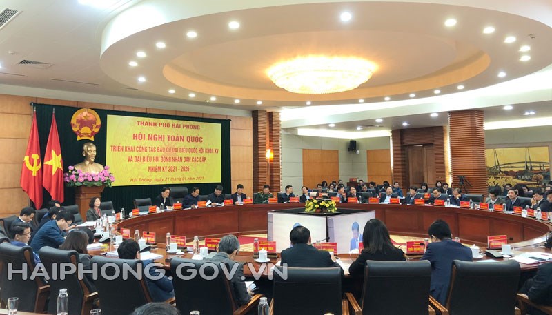 Dự tại điểm cầu thành phố Hải Phòng có các đồng chí: Lê Văn Thành, Ủy viên Trung ương Đảng, Bí thư Thành ủy, Chủ tịch HĐND thành phố, Trưởng Ban Chỉ đạo của Thành ủy về công tác bầu cử đại biểu Quốc hội khóa XV và đại biểu HĐND các cấp nhiệm kỳ 2021 – 2026; Đỗ Mạnh Hiến, Phó Bí thư Thường trực Thành ủy; các đồng chí Ủy viên Ban Thường vụ Thành ủy; các đồng chí trong Ban Chỉ đạo bầu cử, Ủy ban bầu cử thành phố và lãnh đạo các ban, ngành, địa phương.
