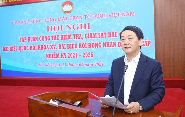Sáng 23/2, tại Hà Nội, UBTƯ MTTQ Việt Nam tổ chức Hội nghị trực tuyến tập huấn công tác kiểm tra, giám sát bầu cử Đại biểu Quốc hội khóa XV, Đại biểu Hội đồng nhân dân (HĐND) các cấp nhiệm kỳ 2021-2026. Ông Hầu A Lềnh, Ủy viên Trung ương Đảng, Phó Chủ tịch – Tổng Thư ký, Phó Trưởng Ban Chỉ đạo công tác bầu cử UBTƯ MTTQ Việt Nam; ông Ngô Sách Thực, Phó Chủ tịch UBTƯ MTTQ Việt Nam chủ trì Hội nghị.