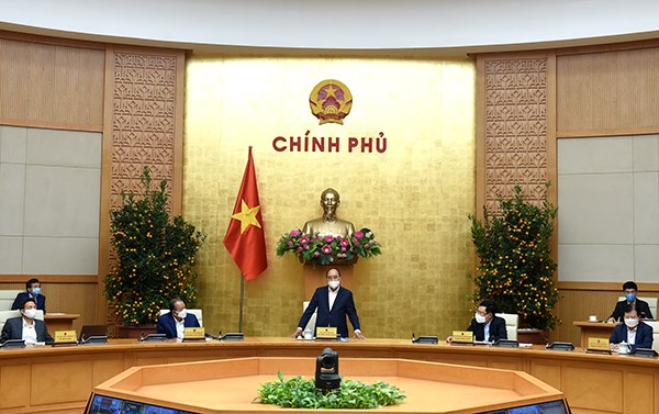 Sau khi nghe ý kiến phát biểu của các đồng chí Phó Thủ tướng Chính phủ, lãnh đạo Bộ, ngành Trung ương và các địa phương, Thủ tướng Chính phủ Nguyễn Xuân Phúc biểu dương Ban Chỉ đạo Quốc gia phòng, chống dịch COVID-19, Bộ Y tế, các địa phương đã quyết liệt chỉ đạo đạt hiệu quả cao trong công tác phòng, chống dịch COVID-19, đặc biệt đảm bảo sản xuất kinh doanh, lưu thông hàng hóa. Thủ tướng Chính phủ đánh giá cao các địa phương: Hải Dương, Hải Phòng, Hà Nội và thành phố Hồ Chí Minh đã xử lý nghiêm các trường hợp vi phạm trong phòng chống dịch bệnh COVID-19. Thủ tướng Nguyễn Xuân Phúc yêu cầu Bộ Y tế thực hiện nghiêm yêu cầu của Bộ Chính trị và Thủ tướng dự thảo Nghị quyết về tiêm phòng vắc xin trình Thủ tướng ngay trong ngày 24/2/2021 trong đó nêu rõ thứ tự ưu tiên tiêm vắc xin trên tinh thần ưu tiên đối tượng nguy cơ cao, vùng dịch ưu tiên tiêm trước. Bộ Công Thương chủ trì cùng Bộ Nông nghiệp và Phát triển nông thôn, Bộ Y tế ban hành quy trình tiêu thụ sản phẩm trong vùng dịch. Chủ tịch UBND các tỉnh, thành phố vừa có biện pháp cụ thể kiểm soát dịch bệnh đồng thời phát triển sản xuất kinh doanh. Bộ Giáo dục và Đào tạo và các địa phương đẩy mạnh việc dạy học trực tuyến. Bộ Quốc phòng, Công an, Y tế và các địa phương chuẩn bị sẵn các khu cách ly tập trung. Bộ Y tế, Bộ Công thương, Bộ Quốc phòng và các địa phương phối hợp chuẩn bị một số khu vực giao dịch cần thiết, an toàn để không gây ách tắc hàng hóa. Các bộ: Bộ Thông tin và Truyền thông, Y tế, cơ quan thông tin và truyền thông tăng cường tuyên truyền các biện pháp phòng, chống dịch, xử lý vi phạm trong công tác phòng chống dịch bệnh COVID-19.