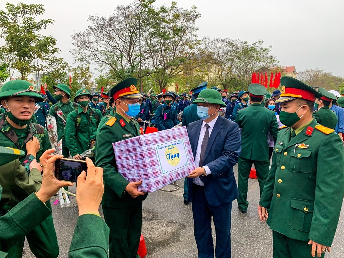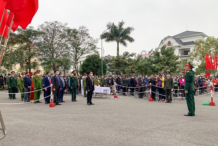Buổi lễ giao quân diễn ra trang trọng, nhanh gọn và đảm bảo an toàn công tác phòng chống dịch bệnh Covid-19.