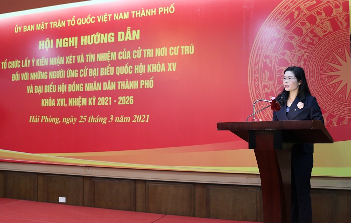 Tại hội nghị, các đại biểu được hướng dẫn cụ thể, chi tiết về nội dung, thủ tục, trình tự, thời gian triển khai Hội nghị lấy ý kiến nhận xét, tín nhiệm của cử tri nơi cư trú đối với những người ứng cử đại biểu Quốc hội khoá XV, đại biểu HĐND thành phố khoá XVI, nhiệm kỳ 2021-2026; tổ chức Hội nghị lấy ý kiến với cử tri nơi công tác và nơi cư trú đối với người tự ứng cử (nếu có). Theo đó, thời gian tổ chức Hội nghị từ ngày 21/3/2021 đến ngày 13/4/2021.