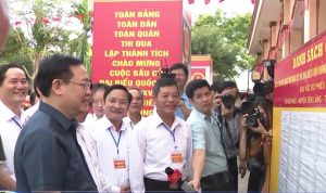 Chủ tịch Quốc hội Vương Đình Huệ kiểm tra công tác bầu cử ở Khu vực bỏ phiếu số 5, tại thôn Nam Tử, xã Kiến Thiết, huyện Tiên Lãng