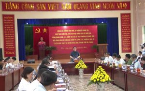 Đồng chí Vương Đình Huệ, Ủy viên Bộ Chính trị, Chủ tịch Quốc hội phát biểu tại cuộc làm việc tại huyện Tiên Lãng