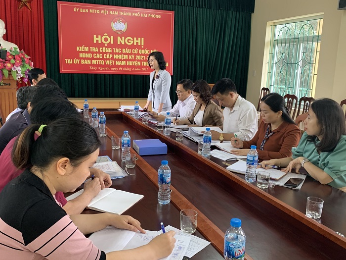Thực hiện Kế hoạch của Ban Thường trực Ủy ban MTTQ Việt Nam thành phố, trong 3 ngày 06, 07 và 08/4/2021 đồng chí Vũ Anh Thư, Phó Chủ tịch Ủy ban MTTQVN thành phố làm Trưởng đoàn kiểm tra, giám sát công tác chuẩn bị bầu cử đại biểu Quốc hội (ĐBQH) khóa XV, đại biểu Hội đồng nhân dân (HĐND) các cấp nhiệm kỳ 2021-2026 tại các huyện, quận: Thủy Nguyên, An  Lão, Hồng Bàng, Đồ Sơn và Dương Kinh.