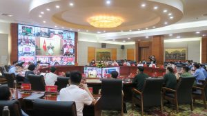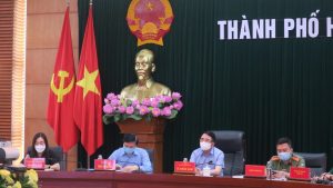 Tại điểm cầu thành phố Hải Phòng, Phó Chủ tịch UBND thành phố Lê Khắc Nam cùng các thành viên Ban Chỉ đạo phòng, chống dịch COVID-19 thành phố tham dự Hội nghị.