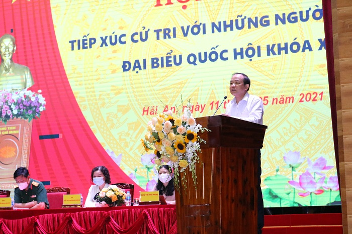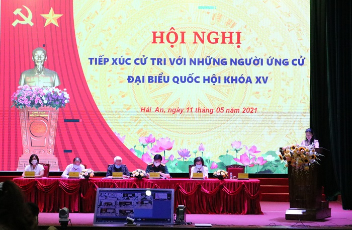 Thưc hiện Kế hoạch tiếp xúc cử tri vận động bầu cử đại biểu Quốc hội khóa XV, sáng ngày 11/5, tại quận Hải An, Ủy ban MTTQVN thành phố tổ chức Hội nghị trực tuyến tiếp xúc cử tri với người ứng cử đại biểu Quốc hội khóa XV. Chủ trì Hội nghị: Đồng chí Nguyễn Thị Minh Phương, Phó Chủ tịch Ủy ban MTTQVN thành phố. Tới dự có các đồng chí Nguyễn Đức Thọ, Phó Chủ tịch UBND thành phố- Trưởng ban bầu cử Đại biểu Quốc hội số 2; Nguyễn Văn Tuấn, Thành ủy viên- Bí thư Quận ủy; đại diện lãnh đạo và cử tri 8 phường trên địa bàn quận tại 9 điểm cầu.