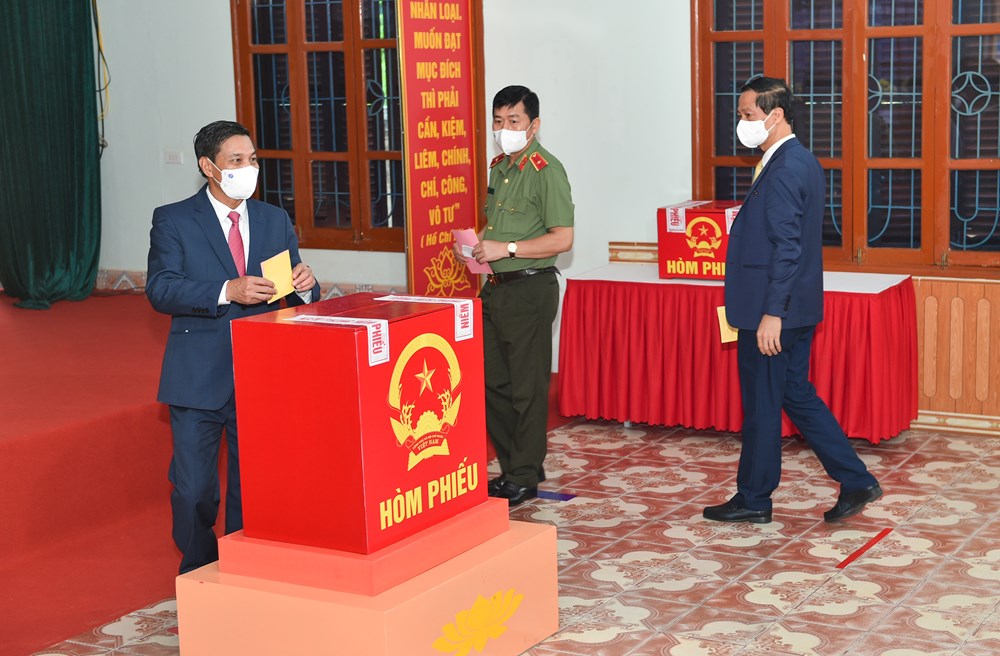 Sau lễ khai mạc, đồng chí Vương Đình Huệ, Ủy viên Bộ Chính trị, Chủ tịch Quốc hội cùng các đồng chí trong đoàn công tác của Quốc hội, lãnh đạo thành phố cùng cử tri khu vực bỏ phiếu số 1, thị trấn An Lão đã thực hiện quyền công dân, bỏ phiếu bầu vào hòm phiếu để lựa chọn những đại biểu xứng đáng tại Quốc hội và HĐND các cấp.