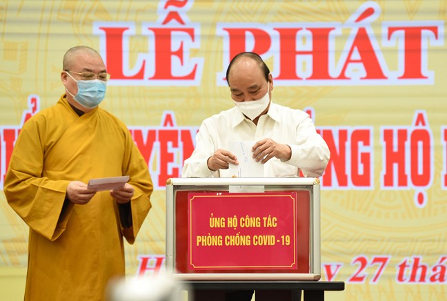 Chủ tịch nước Nguyễn Xuân Phúc cùng các đại biểu chung tay ủng hộ công tác phòng, chống dịch