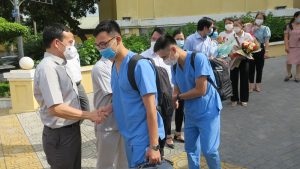 Trước khi lên đường, bác sĩ Đàm Quang Sơn – Trưởng Khoa Cấp cứu Hồi sức tích cực và Chống độc, Bệnh viện Phổi Hải Phòng đại diện Đoàn công tác cho biết, được sự tin tưởng của lãnh đạo thành phố, lãnh đạo Sở Y tế và các cấp ngành, Đoàn công tác rất vinh dự được giao nhiệm vụ tham gia chi viện cho công tác phòng chống dịch COVID-19 tại tỉnh Bắc Giang. Đoàn công tác hứa sẽ chung sức chung lòng, đoàn kết hoàn thành tốt nhiệm vụ được giao, chiến thắng dịch COVID-19.