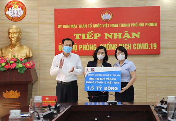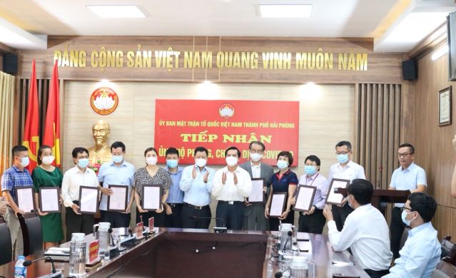 Hưởng ứng Lời kêu gọi của Thành ủy – Hội đồng nhân dân – Ủy ban nhân dân – Ủy ban MTTQ Việt Nam thành phố, chiều 11/6, tại Hội trường cơ quan Ủy ban MTTQ Việt Nam thành phố, các cơ quan, doanh nghiệp, doanh nhân, nhà hảo tâm đã trao kinh phí ủng hộ tới Ủy ban MTTQ Việt Nam thành phố với số tiền trên 9 tỷ đồng gồm: Công ty Cổ phần xếp dỡ Hải An 2 tỷ đồng; Công ty xăng dầu khu vực III 1,5 tỷ; Công ty DOOSAN VINA Hải Phòng 200 triệu; Công ty Cổ phần POLYFILL 200 triệu; BCT chương trình “Vượt lên giông bão” 120 triệu; gia đình ông Nguyễn Văn Lộc 84 tuổi, bà Phạm Thị Liên 82 tuổi ở số nhà 20/17 Trung Hành, Đằng Lâm 100 triệu; Ban Quản lý khu kinh tế Hải Phòng 50 triệu; Công ty Liên doanh KCN Đồ Sơn 1 tỷ; Công ty Cổ phần Khu công nghiệp Đình Vũ 500 triệu; Doanh nghiệp KCN Nam Cầu Kiền 500 triệu; Công ty Nhựa Pha Lê (Đình Vũ) 500 triệu; Công ty Cổ phần phát triển Khu công nghiệp Nomura 500 triệu; Công ty TNHH Điện máy Đại Dương (Hải Phòng) 300 triệu; Công ty TNHH điện tử Chilisin (Việt Nam) 200 triệu; Công ty Universal Scientific Industrial (Việt Nam) 200 triệu; Công ty TNHH Công nghệ AmTran Việt Nam 200 triệu; Công ty TNHH Liteon Việt Nam 200 triệu; Công ty TNHH Công nghệ Hiltron Việt nam 200 triệu; Công ty TNHH Phihong Việt Nam 200 triệu; Công ty TNHH Flat (Việt Nam) 200 triệu; Công ty TNHH Autel Việt Nam 100 triệu; Công ty TNHH EvironStar 50 triệu đồng…