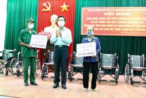 Chủ tịch Ủy ban MTTQVN thành phố Cao Xuân Liên trao quà cho đại diện Hội nạn nhân chất độc da cam