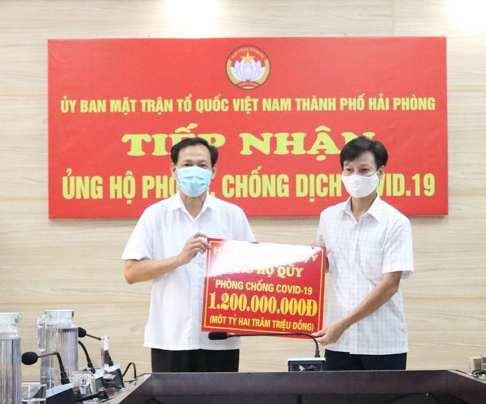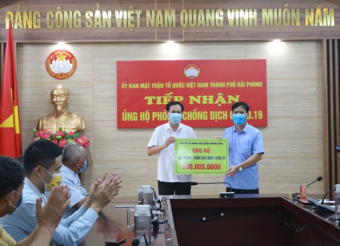 Chiều 01/7/2021, đồng chí Đỗ Tràng Thành, Phó Chủ tịch Ủy ban MTTQVN thành phố chủ trì tiếp nhận kinh phí ủng hộ công tác phòng, chống Covid-19 từ các đơn vị, doanh nghiệp: Hiệp hội Thương mại Đài Loan tại Hải Phòng 200 triệu đồng; cán bộ và nhân dân quận Lê Chân 1,6 tỷ đồng; cán bộ và nhân dân quận Dương Kinh 500 triệu đồng; cán bộ và nhân dân huyện Kiến Thụy 1,2 tỷ đồng. Tổng số tiền tiếp nhận là 3,5 tỷ đồng.