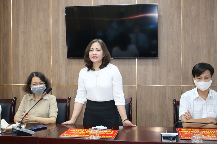 Chủ tịch Ủy ban MTTQVN quận Lê Chân Bùi Thị Thu Phương phát biểu tại buổi tiếp nhận