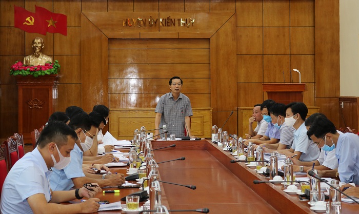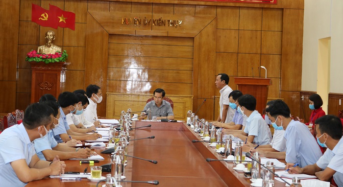 Đại diện lãnh đạo huyện Kiến Thụy báo cáo tại buổi làm việc