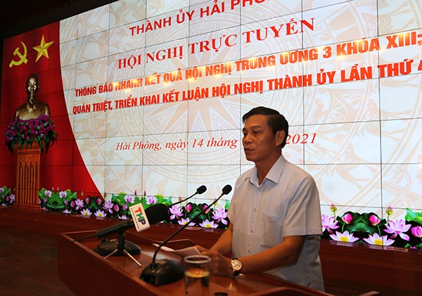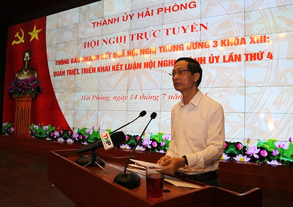 Sáng 14/7, tại Trung tâm Hội nghị thành phố, đồng chí Trần Lưu Quang, Ủy viên Trung ương Đảng, Bí thư Thành ủy chủ trì Hội nghị trực tuyến thông báo nhanh kết quả Hội nghị lần thứ 3 Ban Chấp hành Trung ương Đảng khóa XIII và quán triệt, triển khai Kết luận Hội nghị Thành ủy lần thứ 4 khóa XVI. Cùng dự có các đồng chí: Nguyễn Văn Tùng, Phó Bí thư Thành ủy, Chủ tịch UBND thành phố; Đỗ Mạnh Hiến, Phó Bí thư Thường trực Thành ủy; các đồng chí Ủy viên Ban Thường vụ Thành ủy, Ủy viên Thành ủy. Dự Hội nghị tại điểm cầu các quận, huyện ủy có các đồng chí Bí thư, Phó Bí thư; Chủ tịch, Phó Chủ tịch HĐND, UBND các quận huyện.