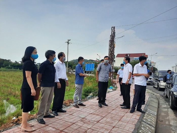 Các đại biểu khảo sát thực tế tại tuyến đường qua địa bàn thôn Quế Lâm, xã Thụy Hương