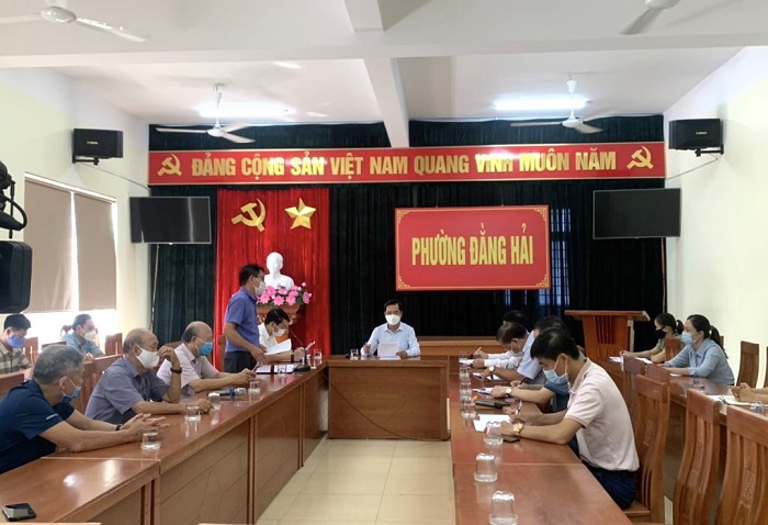 Đại diện phường Đằng Hải báo cáo tại buổi làm việc