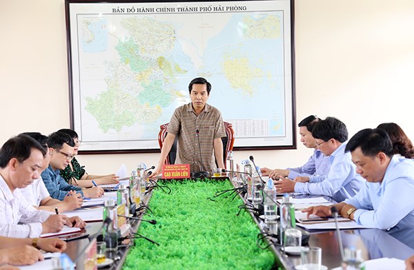 Đ/c Cao Xuân Liên, Uỷ viên Ban Thường vụ Thành uỷ, Chủ tịch Uỷ ban MTTQ Việt Nam thành phố phát biểu tại Huyện ủy Tiên Lãng