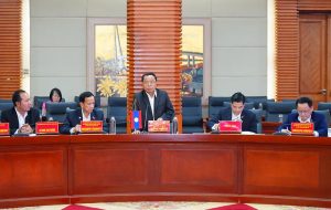 Đồng chí Khamphan Phommathat Ủy viên Bộ chính trị, Bí thư TW Đảng, Chủ nhiệm Ban Kiểm tra TW Đảng, Trưởng ban chống tham nhũng TW, Tổng Thanh tra Nhà nước Lào phát biểu tại buổi làm việc.