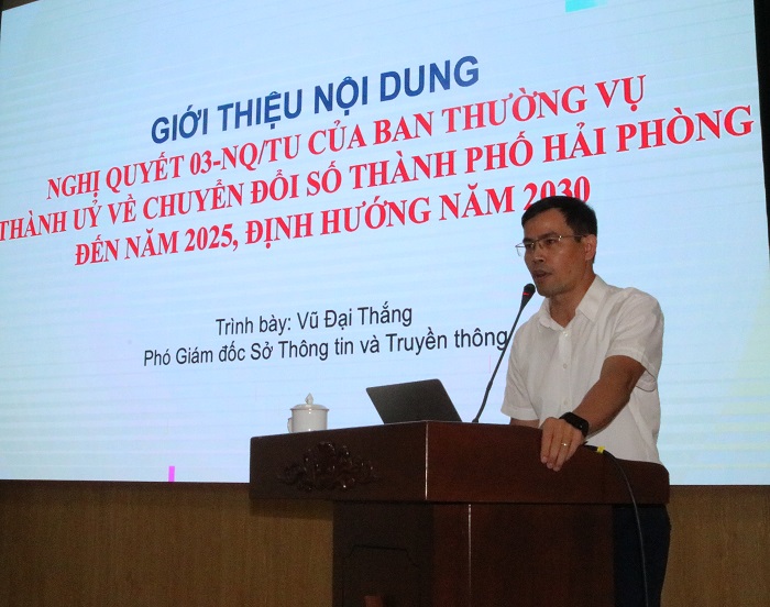 Phó Giám đốc Sở Thông tin và Truyền thông Vũ Đại Thắng hướng dẫn, triển khai thực hiện chuyển đổi số trong hệ thống Mặt trận thành phố