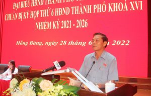 Tại cuộc tiếp xúc, cử tri quận Hồng Bàng được thông báo về nội dung, thời gian tiến hành Kỳ họp thứ 6 HĐND thành phố khóa XVI, nhiệm kỳ 2021 – 2026. Cử tri quận Hòng Bàng bày tỏ vui mừng phấn khởi trước sự phát triển của thành phố, 6 tháng đầu năm mặc dù trong điều kiện dịch bệnh diễn biến hết sức phức tạp, kinh tế thành phố vẫn tiếp tục phát triển, đô thị được đầu tư xây dựng hiện đại, khởi công, khánh thành nhiều công trình lớn. Cử tri đồng tình với các dự thảo nghị quyết trình HĐND thành phố tại kỳ họp này, đặc biệt tại kỳ họp này thành phố đã có đánh giá tổng thể và xây dựng một đề án về thu gom, vận chuyển và xử lý chất thải rắn trên địa bàn thành phố Hải Phòng giai đoạn 2022-2025, tầm nhìn đến năm 2050.