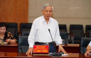 Cử tri Lê Danh Xương, Nguyên Ủy viên TW Đảng, Nguyên Bí thư Thành ủy phát biểu tại cuộc tiếp xúc