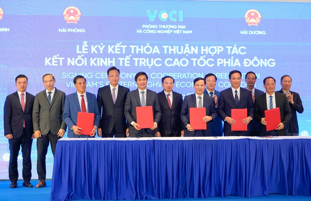 Chiều 28/7 tại Quảng Ninh, Phòng Thương mại và Công nghiệp Việt Nam (VCCI) tổ chức Lễ Ký kết thỏa thuận và Diễn đàn Kết nối kinh tế trục cao tốc phía Đông giữa Chủ tịch UBND 04 tỉnh, thành phố, gồm: Hải Phòng, Quảng Ninh, Hải Dương và Hưng Yên. Đây là sáng kiến trong thực hiện chủ trương của Đảng, Nhà nước về đẩy mạnh liên kết vùng, nhằm tăng cường phối hợp khai thác, phát huy tiềm năng, lợi thế của 4 địa phương dọc theo trục đường cao tốc Hà Nội – Hải Phòng – Móng Cái.