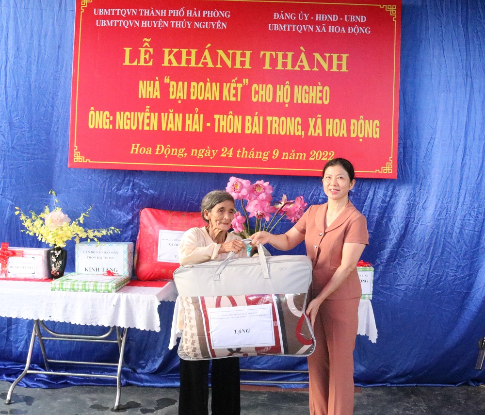 Chiều ngày 24/9/2022, Ủy ban MTTQVN huyện Thủy Nguyên tổ chức lễ khánh thành và bàn giao nhà Đại đoàn kết cho hộ nghèo thôn Bái Trong, xã Hoa Động, huyện Thủy nguyên… Tới dự có đồng chí: Nguyễn Thị Minh Phương, Phó Chủ tịch Ủy ban MTTQVN thành phố; cùng đại diện cấp ủy, chính quyền lãnh đạo MTTQ – các đoàn thể, các phòng ban của huyện, xã, thôn; cùng gia đình, dòng họ, hàng xóm…