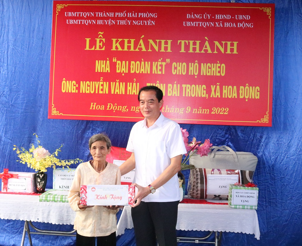 Hộ gia đình ông Nguyễn Văn Hải (76 tuổi), thôn Bái Trong, xã Hoa Động, huyện Thủy Nguyên là 1 trong 10 hộ nghèo của xã, có hoàn cảnh đặc biệt khó khăn. Hai vợ chồng già yếu không còn sức lao động, không có nguồn thu nhập. Qua khảo sát thực tế, ngôi nhà bị hư hỏng xuống cấp đã lâu, gia đình không có điều kiện để xây, sửa lại. Sau 3 tháng thi công căn nhà 40m2 đổ mái bằng hoàn thành theo đúng dự toán thiết kế đảm bảo chất lượng công trình, đáp ứng về công năng sử dụng cho việc sinh hoạt.