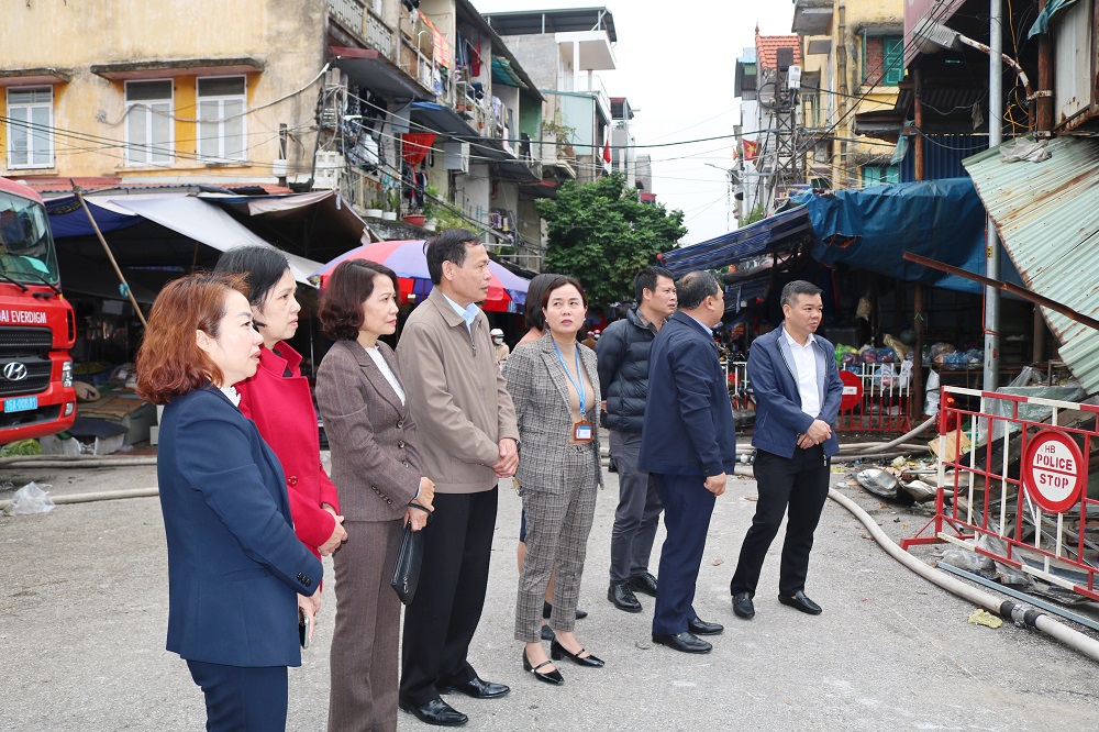 Lãnh đạo Uỷ ban MTTQVN thành phố nắm bắt tình hình cháy chợ Tam Bạc