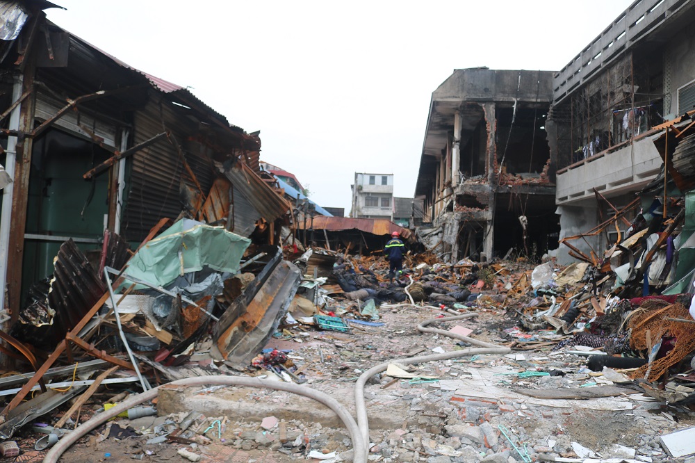 Đoàn công tác thực địa tại hiện trường vụ cháy chợ Tam Bạc