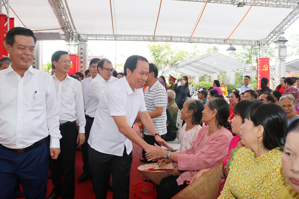 Đồng chí Lê Hải Bình, Uỷ viên dự khuyết Trung ương Đảng, Phó Trưởng Ban Tuyên giáo Trung ương tặng quà cho các hộ gia đình chính sách xã Dương Quan, huyện Thuỷ Nguyên