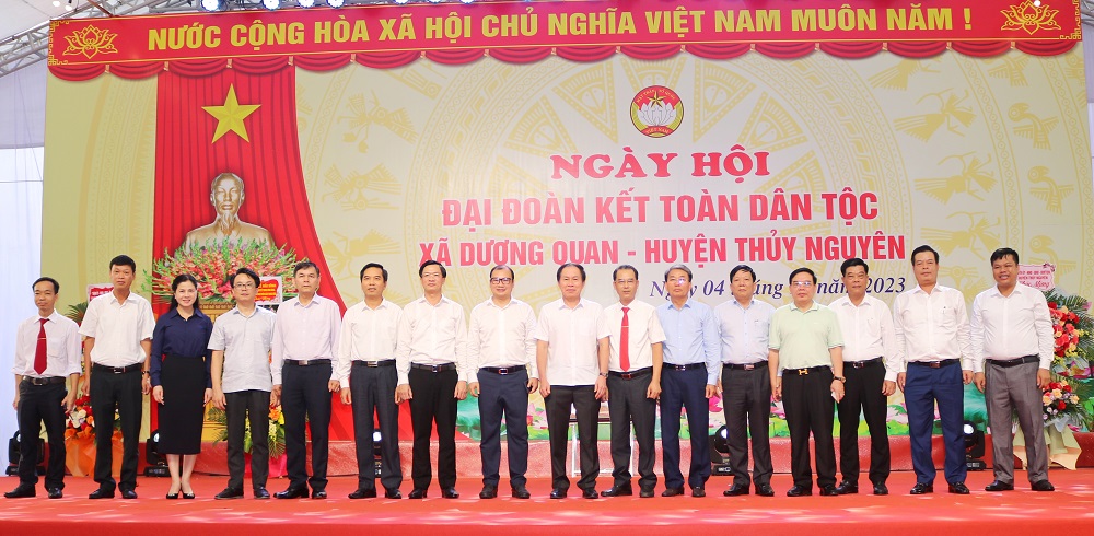 Đồng chí Lê Tiến Châu, Uỷ viên Trung ương Đảng, Bí thư Thành uỷ dự Ngày hội “Đại đoàn kêt toàn dân tộc” tại xã Dương Quan, huyện Thuỷ Nguyên