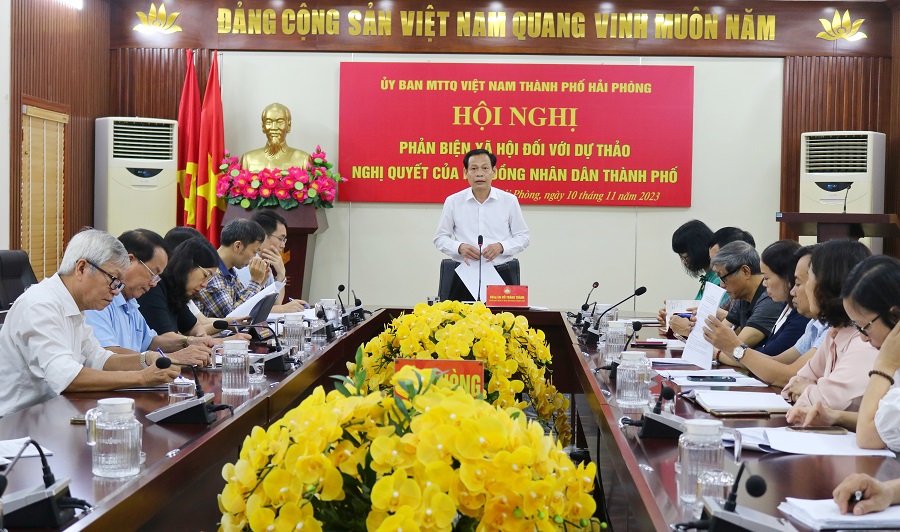 Phát biểu tại hội nghị, Phó Chủ tịch Uỷ ban MTTQVN thành phố Đỗ Tràng Thành trân trọng cám ơn những ý kiến đóng góp có tính phản biện, thể hiện tinh thần trách nhiệm cao của các đại biểu. Đồng thời đề nghị cơ quan chủ trì soạn thảo rà soát lại các nội dung đề án, tiếp thu các ý kiến, tổng hợp, bổ sung hoàn thiện dự thảo Nghị quyết của HĐND thành phố về chức danh, mức phụ cấp đối với những người hoạt động không chuyên trách ở cấp xã, ở thôn, tổ dân phố; mức hỗ trợ hàng tháng đối với người trực tiếp tham gia hoạt động ở thôn, tổ dân phố và kinh phí hoạt động của các tổ chức chính trị – xã hội ở cấp xã trên địa bàn thành phố Hải Phòng nhằm nâng cao chất lượng hoạt động của hệ thống chính trị ở cơ sở.